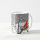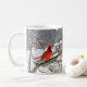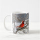 Ein schöner NordKardinal hockte in einem schneebedeckten Baum im Winter.