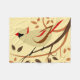Stilisierte Vogelkunst eines Kardinals aus dem Norden, auf dekorativen, wirbelnden Ästen gekrönt und umgeben von Blätter in Herbstfarben