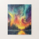 Die leuchtend orangefarbene, gelbe, lila und blaue Northern Lights haben Sie gerade gezeichnet! Und die Reflexion über den See fügt ein zusätzliches Element der Schönheit hinzu. Dies wird ein herausforderndes Rätsel zu machen ~ Genießen