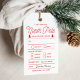 Fügen Sie Ihren Weihnachtsgeschenken eine besondere Touch mit unseren maßgeschneiderten North Pole Feriengeschenkschildern hinzu. Die Weihnachtsgeschenke-Tags enthalten Anleitungen zum "Special Delivery Service" am Nordpol und den Vintagen Schriftart-Stilen in Rot. Die benutzerdefinierten Geschenketiketten enthalten auch Orte, an denen der Empfänger seinen Namen angeben kann, ob er unartig oder nett war, Liefermethode, Lieferdatum und Absendername. Die Rückseite des Designs ist mit einem roten und weißen Schneemuster versehen.