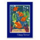 Eine lustige Grußkarte, "Über die Meilen" für das persische Neujahr, mit vier niedlichen Goldfischen, die euch "Happy Norooz" wünschen, aus einer handgemalten Papiercollage von Judy Adamson. Sie können die innere Nachricht dieser Karte personalisieren, wenn Sie möchten.