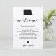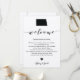 Diese moderne und elegante Karte ist der perfekte Platz für Ihre Hoteltaschen. Geben Sie die wichtigsten Veranstaltungen und einen individuellen Hinweis ein, um Ihren Gästen zu helfen, das Wochenende zu bewältigen.