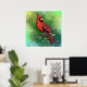 Schöner Northern Red Kardinal Bird - MIGNED Painting Design