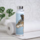 Kleine Schneeflocken fallen still um einen nordwestlichen Wolf.
