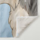 Kleine Schneeflocken fallen still um einen nordwestlichen Wolf.