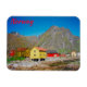 Küste mit Bergen und farbenfrohen Holzhäusern in Svolvaer, Lofoten, Norwegen