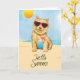 Es ist das Leben eines Hundes! Seien Sie cool und feiern Sie die Sommertage mit diesem niedlichen Norwich Terrier mit Sonnenbrille und entspannen Sie mit einem Getränk.