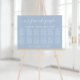 Chic mariage tableau de sièges en acrylique bleu poussiéreux pour jusqu'à 12 tables avec "nos gens préférés" dans un script blanc élégant avec des swashes, vos noms et la date mariage unis par un coeur et "Nous sommes si heureux que vous êtes ici" en lettrage blanc moderne simple.