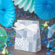 Eine schicke Zelt-Gunst-Box und passender Toothbrush-Holder, mit nostalgischen Imitaten Patchwork aus Blumen-, Karo- und Polka-Dottern, in Indigo Blau und Weiß. Als Teil der Posh und Painterly 'Indigo' Kollektion kann dieses Muster leicht an jede Gefälligkeitsbox angepasst werden.