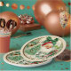 It has a repeating pattern with a soft, faded color palette, mostly in shades of mint green, white, and muted reds/golds.