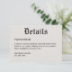 Présentez notre Nostalgic Newspaper Details Enclôture Card, un ajout charmant à votre ensemble de papeterie mariage. Inspiré par l'élégance des journaux vintages, cette carte est parfaite pour tenir vos invités au courant des événements du grand jour. La carte présente une typographie classique de style journal, évoquant un sentiment de nostalgie et un charme intemporel.
