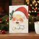 Diese niedliche Weihnachtskarte zeichnet den zeitlosen Charme der Urlaubssaison aus, mit einem nostalgischen Bild vom fröhlichen Gesicht des Weihnachtsmannes, einem wunderschönen Set vor einem Hintergrund, der von glänzenden goldenen Sternen übersät ist, die ein lustiges Gefühl von Staunen und Freude wecken. Im Inneren können Sie Ihre Karte personalisieren, indem Sie eine herzliche Nachricht schreiben (oder die Nachricht verlassen, wie sie ist) und Ihren Namen hinzufügen, um Ihren Lieben personalisierten Beifall zu verbreiten. Ideal für diejenigen, die den klassischen Weihnachtsgeist lieben, ist diese Karte eine angenehme Art, Ihre festlichen Wünsche zu äußern.
