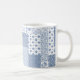 Une chic Mug en céramique blanche, avec une nostalgique Faux Patchwork de motifs à fleurs, à bille et à pois, en bleu et blanc Indigo. Faisant partie de la collection Posh and Painterly 'Indigo', ce motif peut être facilement ajusté pour s'adapter à n'importe quelle Mug.