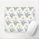 Ein hübsches Blumenmousepad mit rosa Rosen, cremig weißem Mock Orange Blossom und lila Lavendel, von Judy Adamson handbemalt.