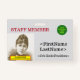Dieses nostalgische und klassische Abzeichen-Design des Personals bietet personalisierte Informationen wie ein Portrait-Foto, ein Business/Organisation-Logo, einen Mitarbeiternamen und einen Rollennamen. Ein solches Abzeichen könnte dazu verwendet werden, jemanden als Mitarbeiter eines Unternehmens, Unternehmens oder einer Organisation zu identifizieren. [~Z0000450]