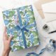 Eine Rolle von hübschem Giftwrap, mit einem nostalgischen Muster der hellen blauen Winden-Blumen auf einem weißen Hintergrund. Teil der vornehmen u. Painterly "Winden" Sammlung.