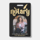 Elegantes, trendiges Business Abzeichen für den notariellen Kreditsignierungs-Agent mit Imitate Folie Gold handgeschriebene Kalligraphie Drehbuch ''Notar'' auf schwarzem Hintergrund. Personalisieren Sie Ihre Daten.