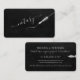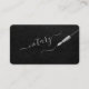 Moderne Typografie berufliche notarielle Visitenkarte mit eleganter silbergrauer Kalligraphie-Schrift und Stifte über einem dunkelschwarzen Lederhintergrund für eine exklusive Luxus-Touch.