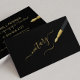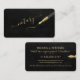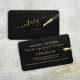 Moderne Typografie berufliche notarielle Visitenkarte mit eleganter Goldkalligraphie-Schrift und Stiften über einem dunkelschwarzen Lederhintergrund für eine exklusive Luxus-Touch.