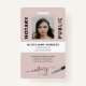 Moderne Typografie berufliche gesetzlich zertifizierte notarielle Anwältin bei Rechtsberater Custom personalisierte staubige Rose schwarze ID Abzeichen mit elegantem Kalligrafieschrift und Stift Logo. ++++++++++ Einfach mit Ihrem Foto, Ihren Daten und Bar auf beiden Seiten personalisieren.