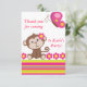 Remerciez vos invités avec ce carte de remerciements mignon de singe. Accomplissez les fleurs et le papillon. Invitations et timbres coordonnés aussi disponibles. Merci à Belen Martindale d'Etsy des graphiques.
