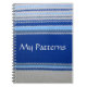 Das Crochet-Muster ist dunkelblau und hellblau, die Streifen sind grau und weiß. Der weiße Text lautet "Meine Muster" - kann für Ihren Gebrauch bearbeitet werden.