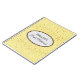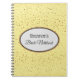 Notebook mit einer Grafik von kleinen Sternen in golden auf einem gelben Hintergrund mit der Phrase "Bride's Notebook" in einer ovalen Form mit koordinierenden Grenzen gezeigt. Passen Sie dieses Element an und ändern Sie den Namen in Ihren Namen oder entfernen Sie den Namen, ändern Sie die Sternenfarben in Filter, Hintergrundfarbe oder kaufen Sie, wie es ist. Die Farbtöne goldfarben, weiß, schwarz und gelb.