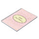 Notebook gezeigt mit einer Grafik von kleinen Sternen in golden auf einem rot rosa Hintergrund mit der Phrase " Bride's Notebook" in einer ovalen Form mit koordinierenden Grenzen von mauve und taupe. Passen Sie dieses Element an und ändern Sie den Namen in Ihren Namen oder entfernen Sie den Namen, ändern Sie die Sternenfarben in Filter, Hintergrundfarbe oder kaufen Sie, wie es ist. Golden, Elfenbein, Bordeaux, Lila und Rosa.