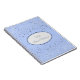 Notebook mit einer Grafik von kleinen Sternen in silbergrau auf einem weichen blauen Hintergrund mit der Phrase "Bride's Notebook" in einer ovalen Form mit koordinierenden Grenzen gezeigt. Passen Sie dieses Element an und ändern Sie den Namen in Ihren Namen oder entfernen Sie den Namen, ändern Sie die Sternenfarben in Filter, Hintergrundfarbe oder kaufen Sie, wie es ist. Die goldfarbenen, weißen, sanft blauen Farben.