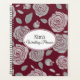 Dieses Planerheft wird mit einer Rose Blumendruck auf einem reichen Bordeaux-Hintergrund gezeigt. Personalisierter Name für Sie, um sich in einem White Oval mit zwei koordinierenden farbigen Rändern von Putty und Pflaume auf der Vorderseite. Zurück gleiche Farbe und Rose Blumendruck. Text wird in Schwarz angezeigt. Farben Grau, Pastel Mauve, Bordeaux. Passen Sie dieses Objekt an oder kaufen Sie, wie es ist.