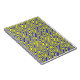 Dieses phantastische Notebook weist ein Wirbles, blaues und gelbes abstraktes Muster auf. Wenn man es vorsichtig anstarrt, sieht es aus, als würde es sich bewegen.