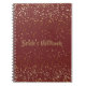 Notebook mit einer Grafik von kleinen Sternen in golden auf bordeauxrotem Hintergrund mit der Phrase "Bride's Notebook" gezeigt. Passen Sie diesen Artikel an und ändern Sie den Namen in Ihren Namen oder entfernen Sie den Namen und kaufen Sie, wie es ist. Golden und Burgund Farben.