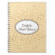 Dieses Notizbuch ist in einer leichten Champagnerfarbe mit goldenen kleinen Sternen gestaltet und verfügt über eine Ovale mit farbigen Rändern und einen personalisierten Namen im Oval. Text in Schokoladenbraun. Passen Sie auf Ihre Wünsche an oder kaufen Sie wie geplant.