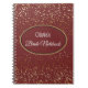 Notebook mit einer Grafik von goldfarbenen kleinen Sternen in einem bordeauxroten Hintergrund mit den Texten von "Olivia's" und "Bride Notebook" umgeben von einem ovalen mit Grenzen der Farbkoordinierung. Passen Sie diesen Artikel an und ändern Sie den Namen in Ihren Namen oder entfernen Sie den Namen und kaufen Sie, wie es ist. Weiße, goldene und bordeauxfarbene Farben.