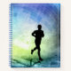 Dieses Notizbuch wird regelmäßig mit Uni-Regelseiten in einem Kunstdruck eines Läufers angezeigt. Passen Sie dieses Objekt an oder kaufen Sie es, wie es ist. Archivbild freepik.com