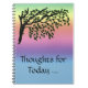 Laue Äste mit einem horizontal gestreiften Regenbogen als Hintergrund. Text kann personalisiert sein. Der Standardtext lautet "Gedanken für heute"