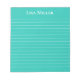 Dieses Notizblock wird mit einem Beispiel für einen individuelle Name angezeigt. Passen Sie dieses Element an und ändern Sie den Beispielnamen in Ihren Namen. Color Deep Aqua Text und Linie Farbe ist eine weiße Farbe.
