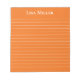 Dieses Notizblock wird mit einem Beispiel für einen individuelle Name angezeigt. Passen Sie dieses Element an und ändern Sie den Beispielnamen in Ihren Namen. Farbe orangefarbener Text und Zeilenfarbe ist eine weiße Farbe.