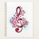 Clé rose treble avec fines fleurs de cerisiers japonais roses et détaillés contre arrière - plan blanc peint avec peinture bleu clair. Sakura rose fleurissant.