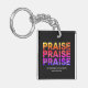 Stylish PRAISE Music Notes Christian Porte - clé conçu avec les mots PRAISE PRAISE PRAISE PRAISE en typographie colorée audacieuse qui inclut également des staves et des notes musicales colorées dans les lettres. En dessous, il y a un TEXTE PERSONNALISABLE qui dit LAISSER TOUT CE QUI A ÉCLATEZ L'ÉTERNEL, qui est basé sur le verset de la Bible chrétienne du Psaume 150. La conception est répétée au contraire. Ce Porte - clé Christian Loué serait idéal pour les musiciens et les adorateurs. Vous pouvez ajouter votre propre texte, ou le nom de votre église ou de votre groupe, etc
