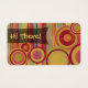 Ce carte de visite a été laissé intentionnellement le blanc sur le dos. Il comporte une palette sophistiquée des rouges, des or, des verts, des bleus, et de l'orange… même quelques bruits de rose-foncé. Mais cette sophistication est un équilibre parfait aux cercles lunatiques et originaux et aux rayures texturisés et nichés des largeurs inégales. Un insigne noir partiel-opaque jette un coup d'oeil dedans de la gauche comme un petit drapeau au-dessus duquel les mots "salut là !" ont été rendus dans une police également amicale. La conception colorée peut être déplacée autour, tournée ou remise à la côte si vous voudriez avoir un peu de contrôle du regard final de ces cartes. De même, changez vos couleurs de police et de textes si vous souhaitez. ///si vous voudriez employer cette conception comme carte de visite réel, plutôt que le laissant vide ainsi pour écrire heureux, les notes amicales sur le dos pour des amis et aimé (aussi bien que les étrangers !) veuillez faire. Ajoutez juste vos détails sur le dos au lieu de laisser lui vide et le voila : un petit carte de visite heureux pour vous !