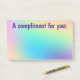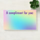 Un joli petit paquet de notes collantes, parfait pour faire des compliments à ses collègues, membres de sa famille ou étrangers ! Diffusez l'amour ! Voici quelques exemples de compliments que vous pourriez donner! "Vous êtes si talentueux !" "Merci d'être un ami si fort et solidaire !" "Vous faites un excellent travail en restant calme en période difficile. Continuez !" "Vos cheveux sont fantastiques !" "J'admire à quel point vous êtes positifs !"