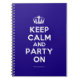 Basierend auf dem ursprünglichen Behalt Calm und ... poster dieser Creme und blau Behalten Calm und Party On Notebook verfügt über einen maßgeschneiderten Schriftart, der eng mit dem Original übereinstimmt.