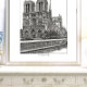 Die berühmte Kathedrale Notre Dame de Paris, die von der Seine aus gezeichnet wurde, um sich an Ihre romantischsten Pariser Ausflüge zu erinnern. Perfekte Wandkunst für ein Retro-Paris-Dekor.