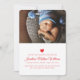 Hey de nouveaux parents ! Annoncez l'arrivée de votre petite Valentine, au mois de février, avec ce carte photo bébé à thème de la Saint-Valentin, élégamment moderne, personnalisable. Le design comporte un joli petit coeur rouge et les lettres "Notre Petite Valentin est arrivé" ainsi que l'exemple photo et texte pour d'autres détails précieux. Personnalisez le design en remplaçant la photo et le texte. Le côté arrière de la carte est doté d'un motif de coeur rouge moderne et audacieux. Veuillez contacter le concepteur pour toute demande de personnalisation de conception.