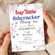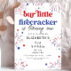 Fêtez votre petite étincelle avec cette invitation d'anniversaire "Notre petit pétard tourne un" ! Feu d'artifice rouge, blanc et bleu, ce design festif et amusant est parfait pour un 4 juillet bain d'anniversaire. Facilement modifiable pour les noms, les dates et les détails de la fête - c’est un pétard de gardien pour le grand jalon de votre petit!