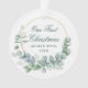 Élégance moderne Notre première aquarelle de Noël Eucalyptus Feuilles Verdure, ornement Gold Circle - Script vert