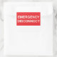 Ein Blatt Notruf-DISCONNECT-Aufkleber für Elektriker, mit dem die Anforderungen von Artikel 230.85 Buchstabe E Nummern 1 und 2 des nationalen Stromkodexes von 2023 erfüllt werden.
