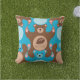 Nounours marron bleu Monogramme Enfant Coussin ext