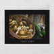Carte postale d'une composition en nature morte d'ingrédients végétaux de la nourriture d'automne comme les champignons porcini, courgettes et citrouille avec une bordure noire et le texte : 'Toscane'.
